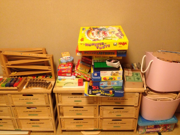 見せる収納?もいいなと思い、我が家はおもちゃを入れる棚の上に