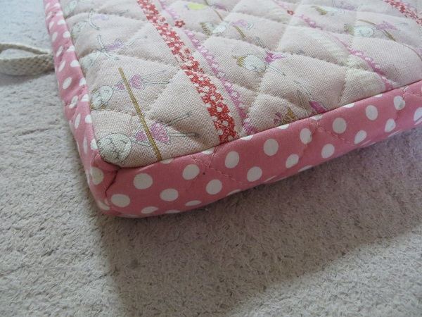 後から側面と同じ水玉生地でリボンも作って