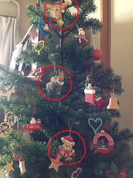 糸を通してクリスマスツリーに飾ってみました