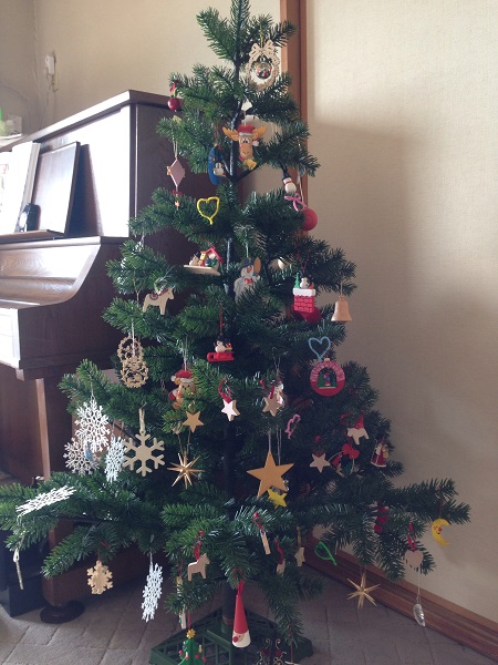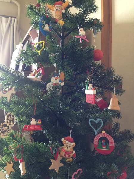 糸を通してクリスマスツリーに飾ってみました