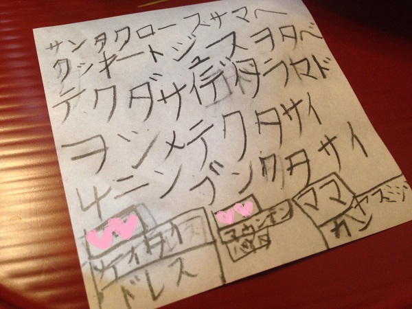 寝る前にはサンタさんへのお菓子につける手紙を